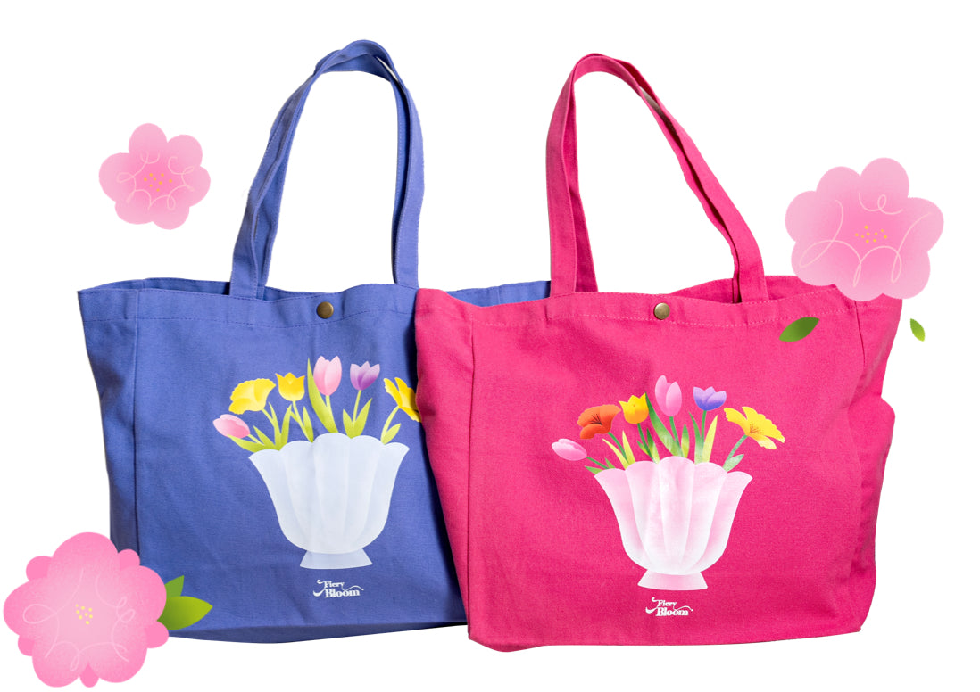 Magenta Canvas Tote Bag – Yellow Poppy Flower Vase Illustration